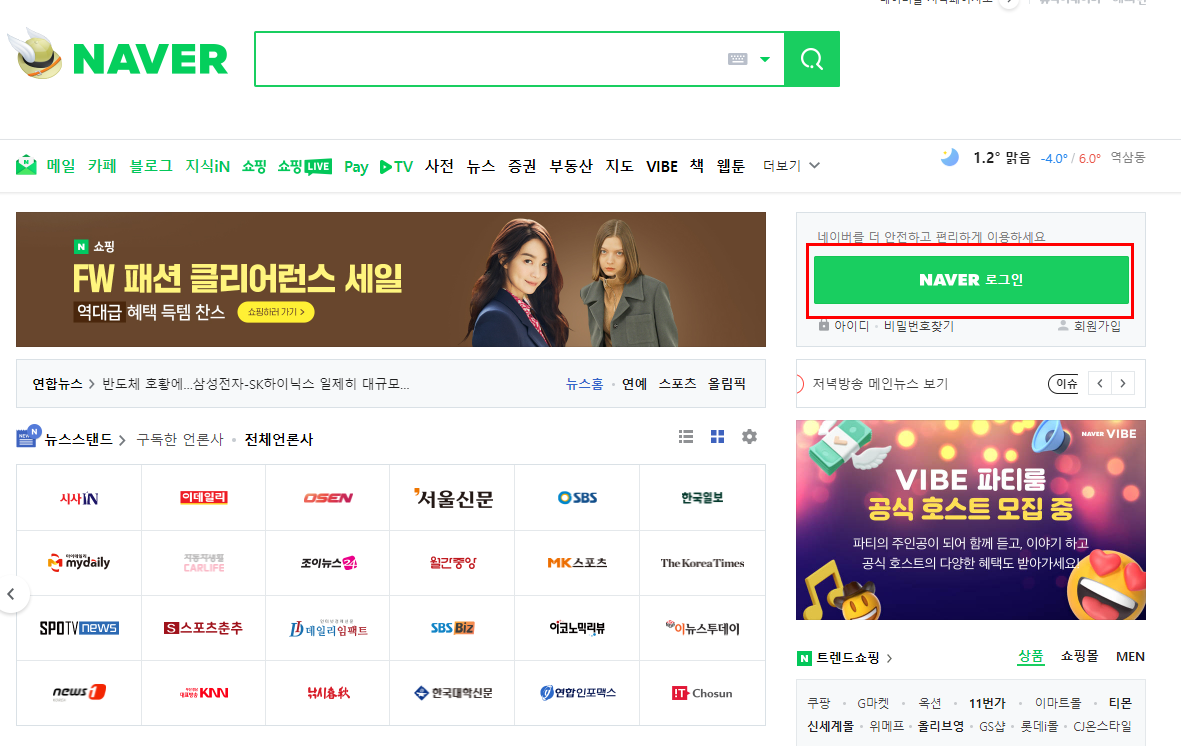 1. 네이버에 접속해주세요.
