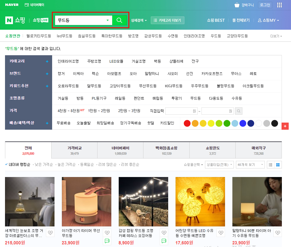 네이버가 네이버 쇼핑 서비스를 구축합니다.