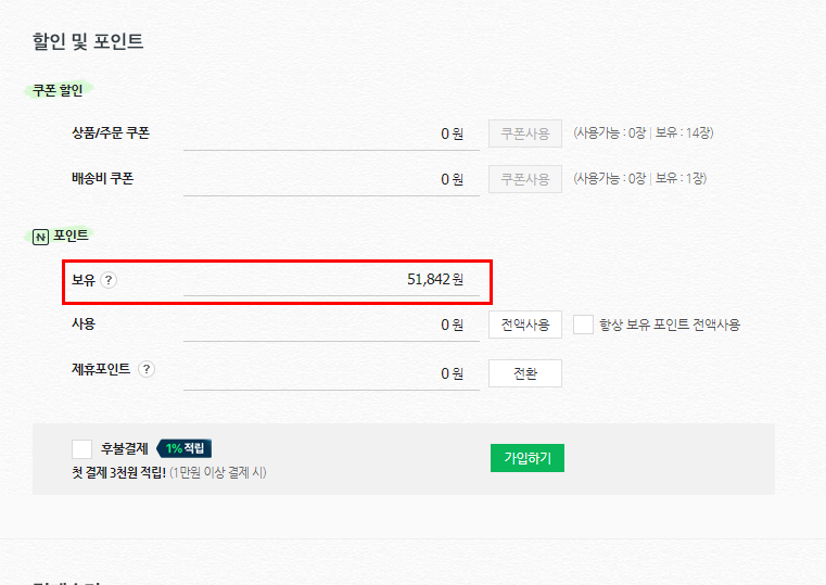 대부분의 상품이 네이버페이로 결제가 되고, 결제 후 리뷰를 쓰면 네이버 페이 포인트를 적립해줍니다.