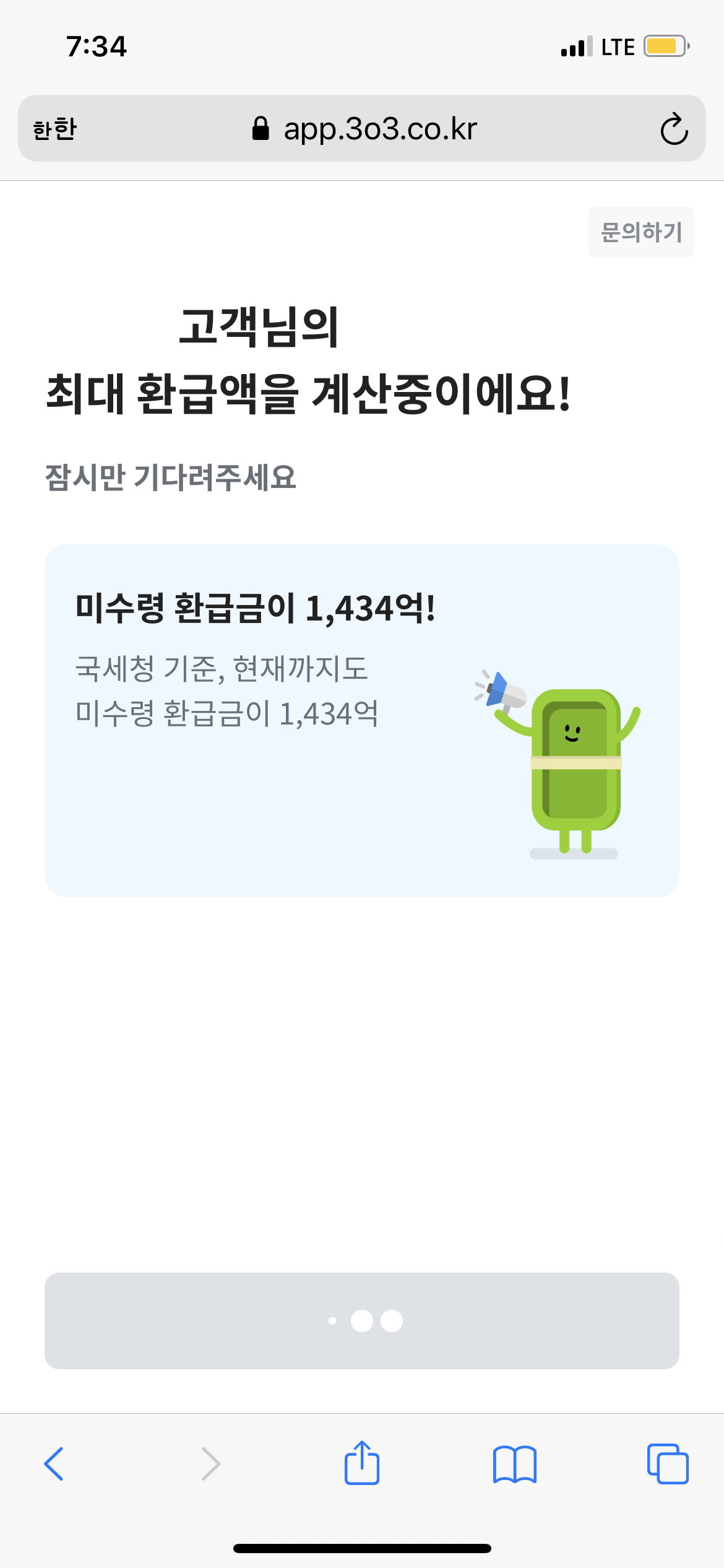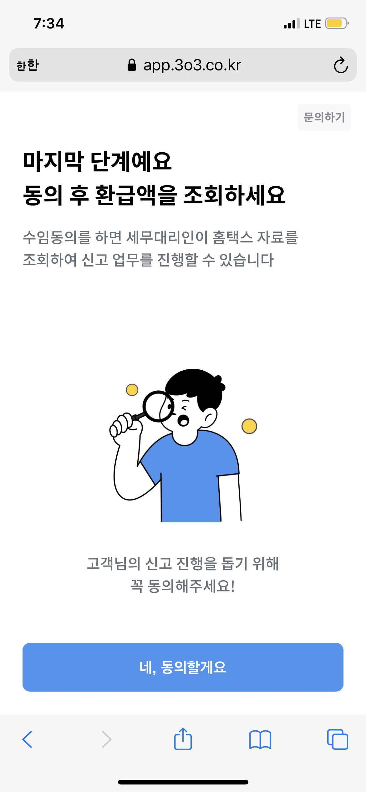 [동의]를 누르고, 환급금이 조회 될 때 까지 대기합니다.