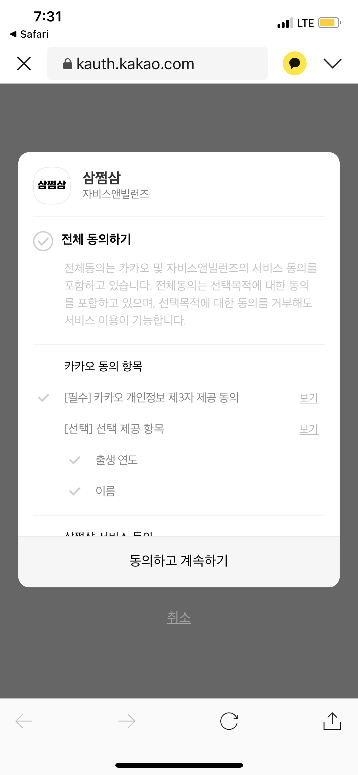 카카오계정으로 로그인 하는 것을 동의합니다.