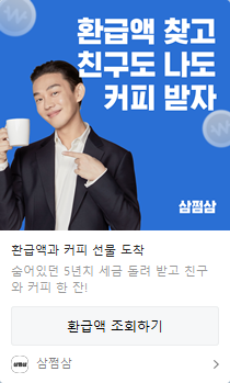 환급금을 받을 때 수수료를 내는데 그때 친구 추천을 하시면 커피쿠폰이 발행됩니다.