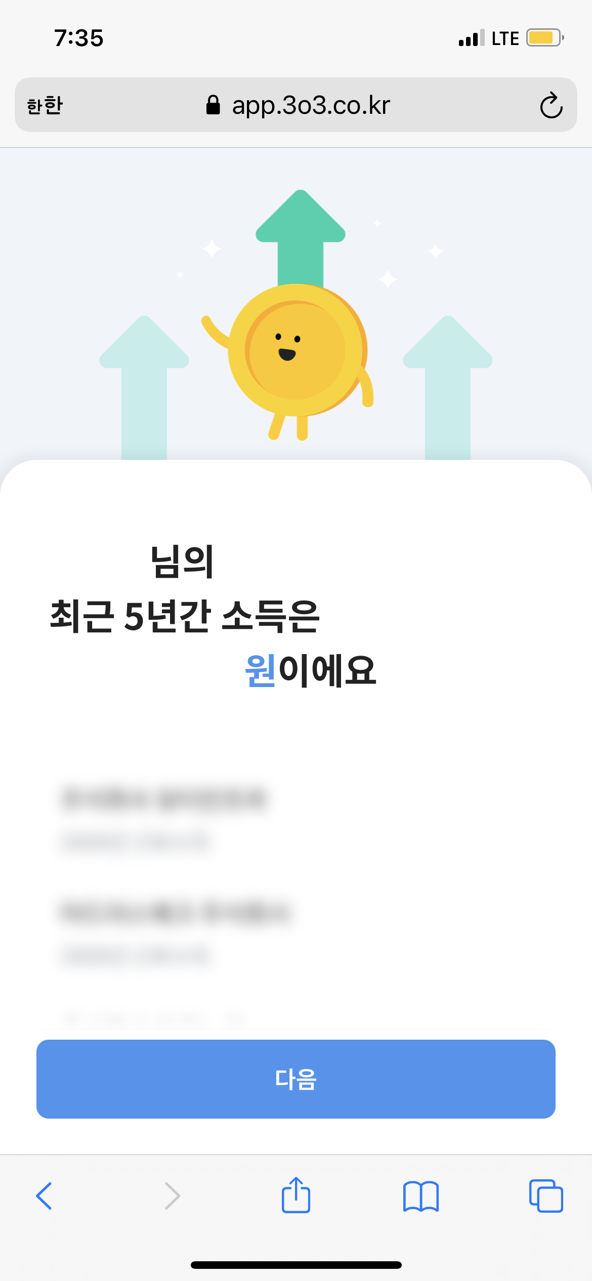 카카오톡으로 간단하게 인증하니 최근 몇년간 일한 회사도 나오고, 근로소득도 한 번에 나오더라구요.