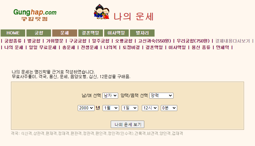 이 사이트는 생시를 모르면 사주를 보기 힘드니 참고해 주세요.