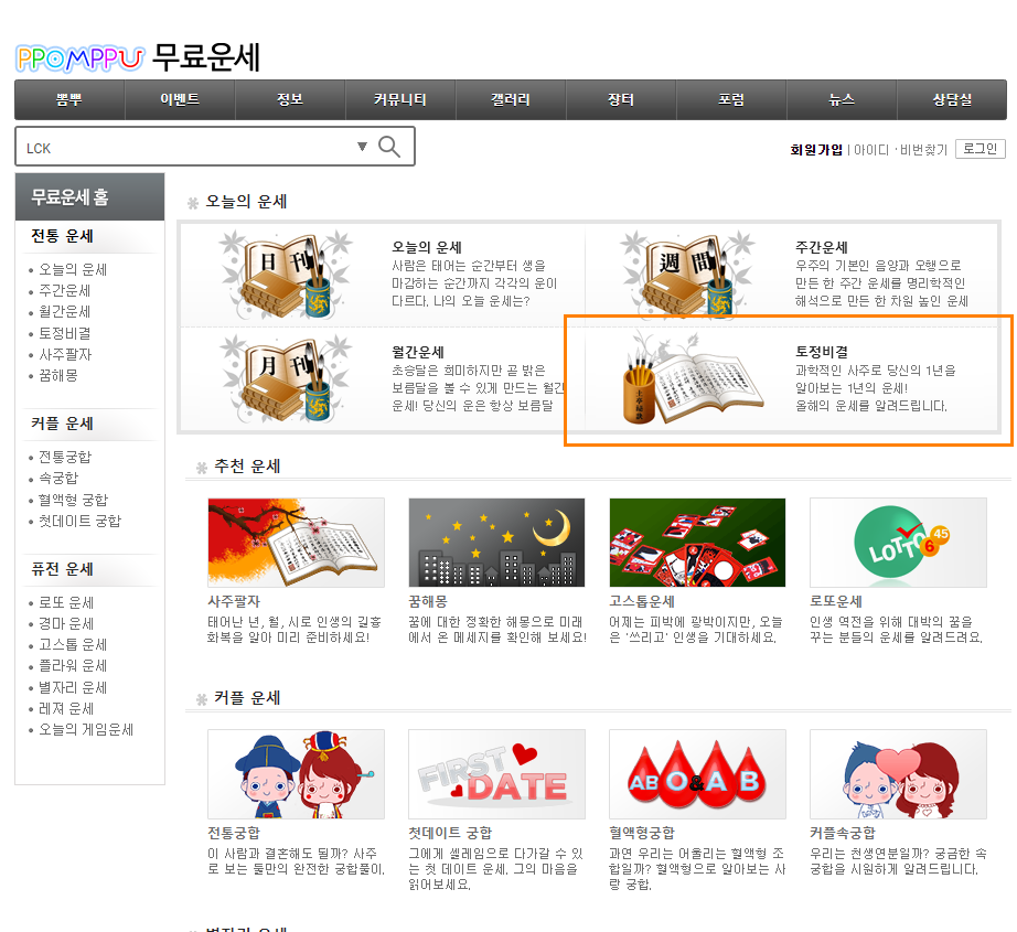 뽐뿌 무료운세는 토정비결로 풀어줍니다.