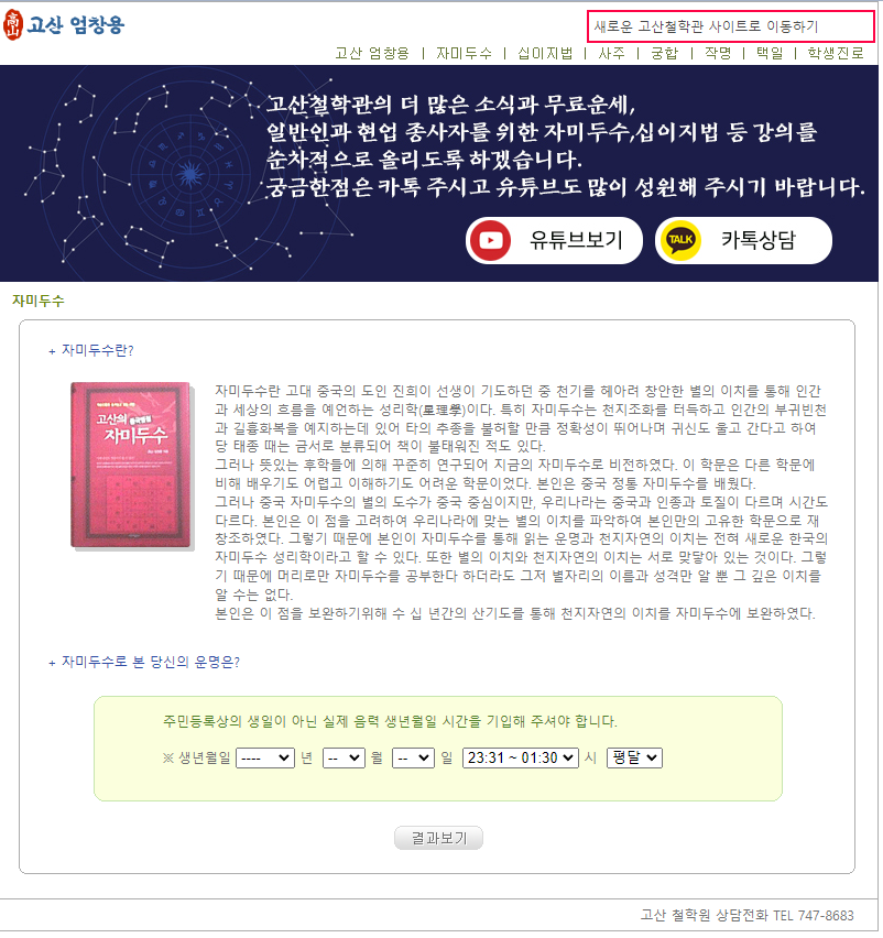4. 고산 철학원 무료 운세