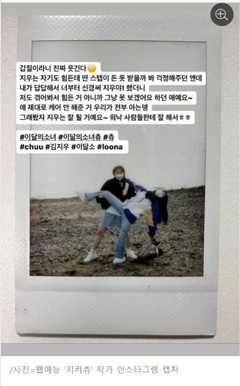 애 제대로 케어 안 해준 거 우리가 전부 아는데 그래봤자 지우는 잘 될 거예요~ 워낙 사람들한테 잘해서 ㅎㅎ