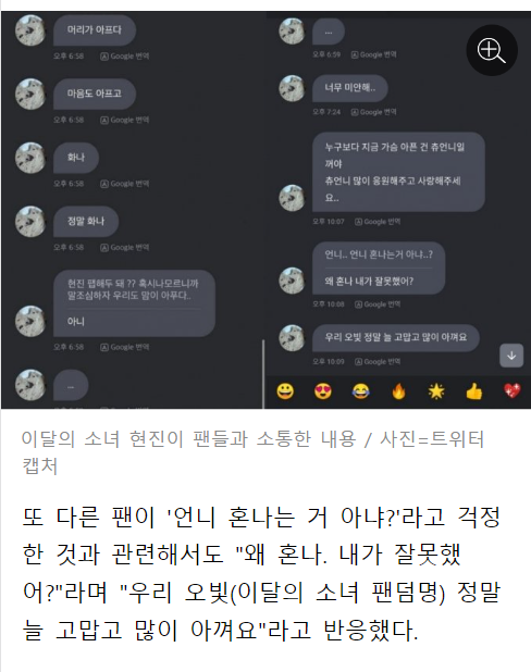 먼저 같은 그룹의 이달의 소녀 현진이 공개적으로 츄에 대한 마음을 전했다.