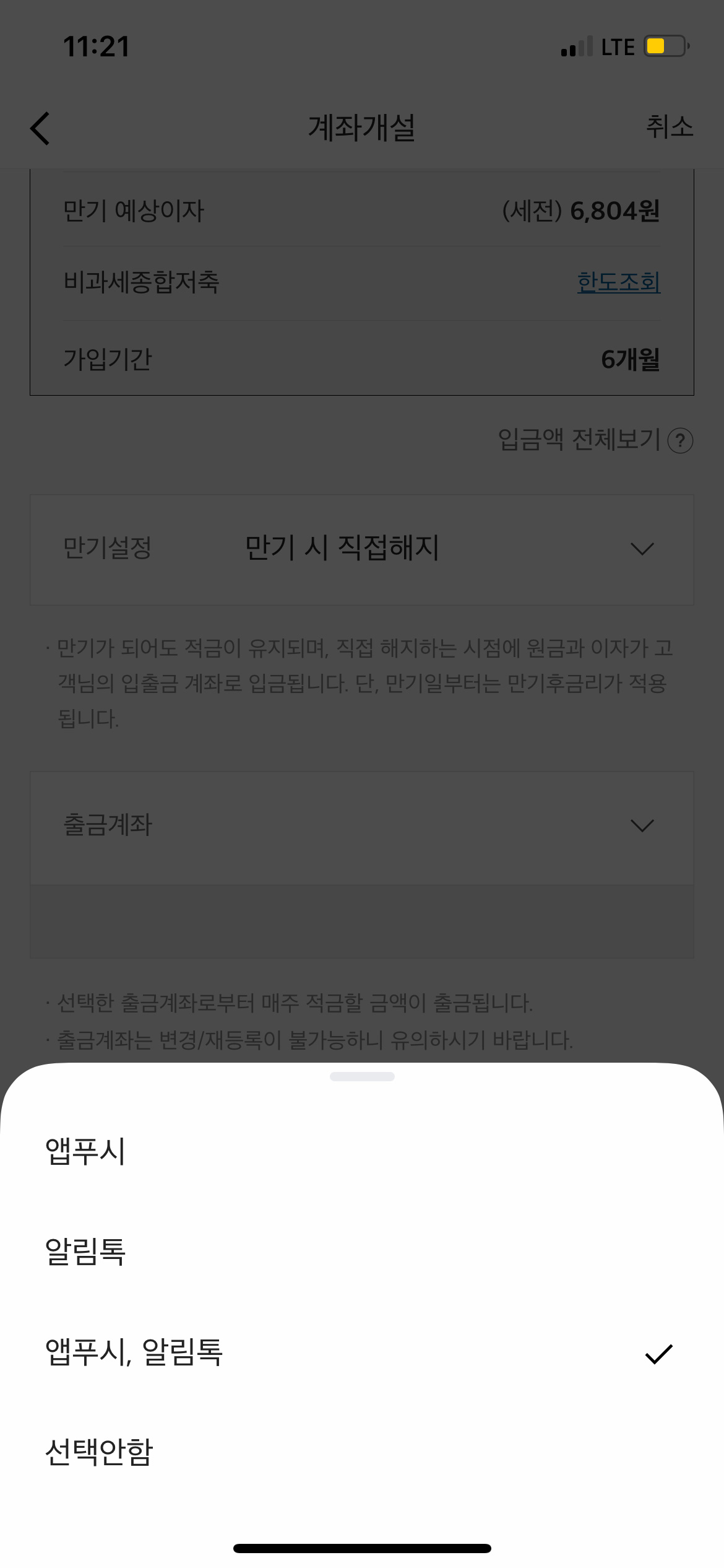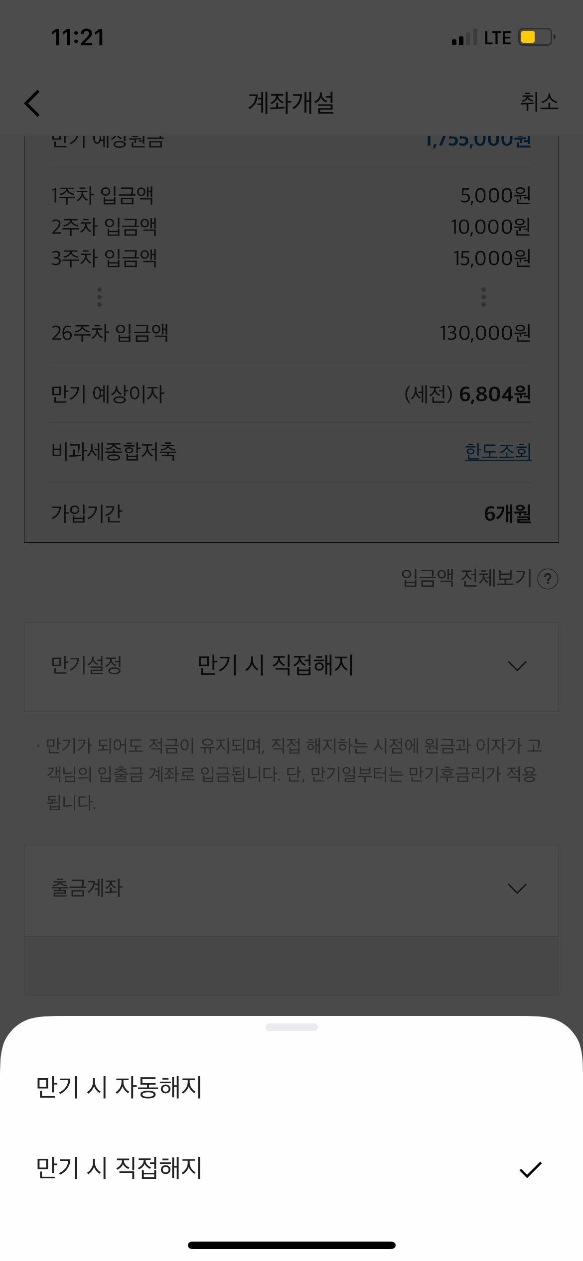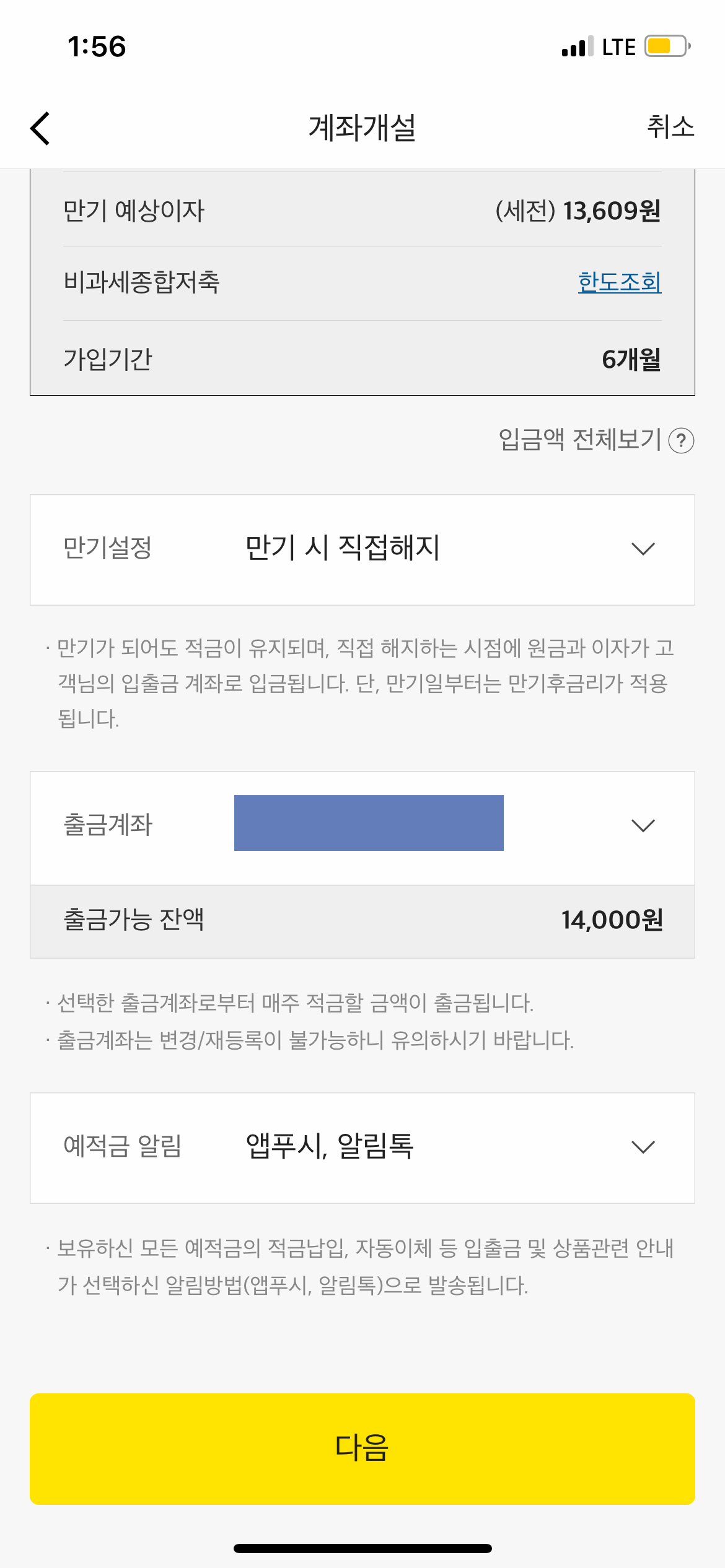그리고 입금액을 최소 금액인 1,000원을 선택하여 가입했습니다.