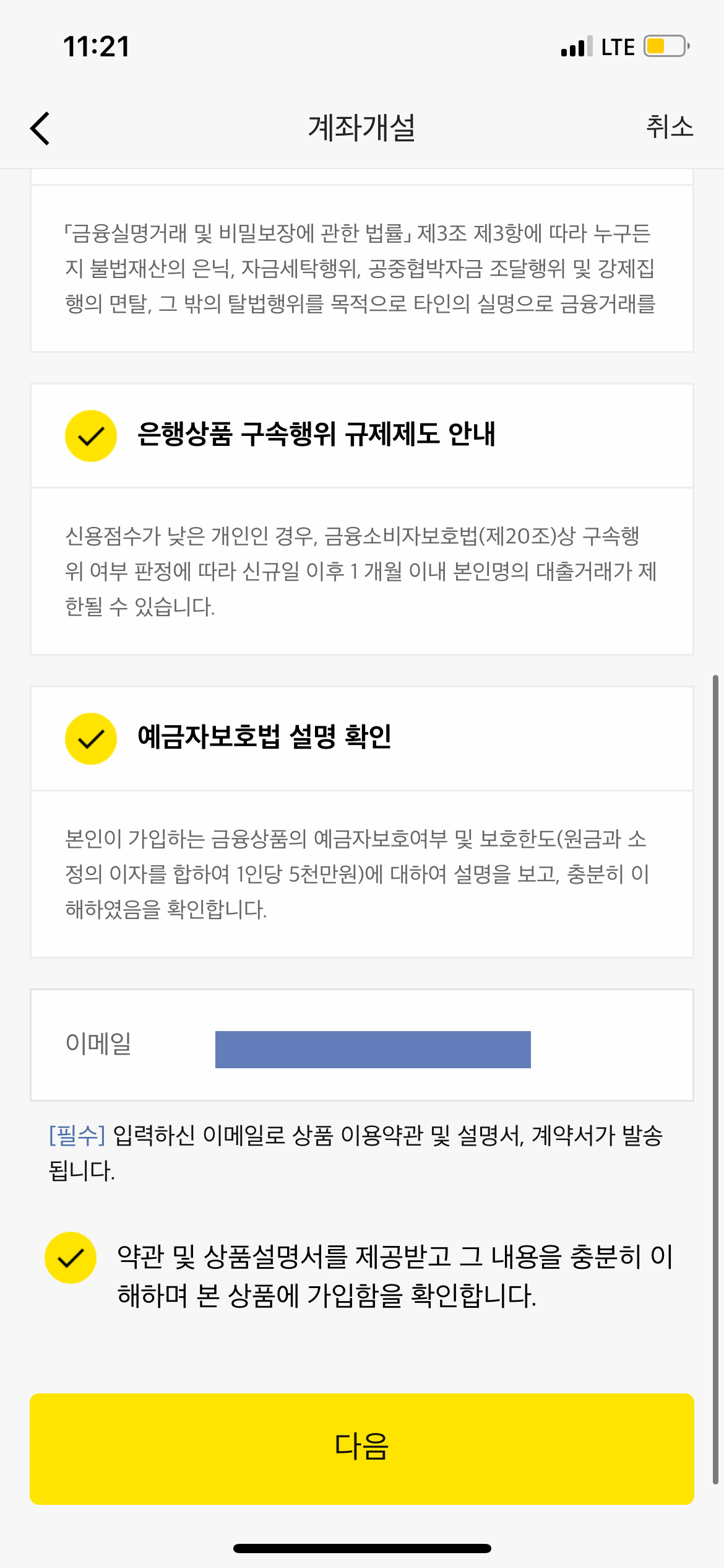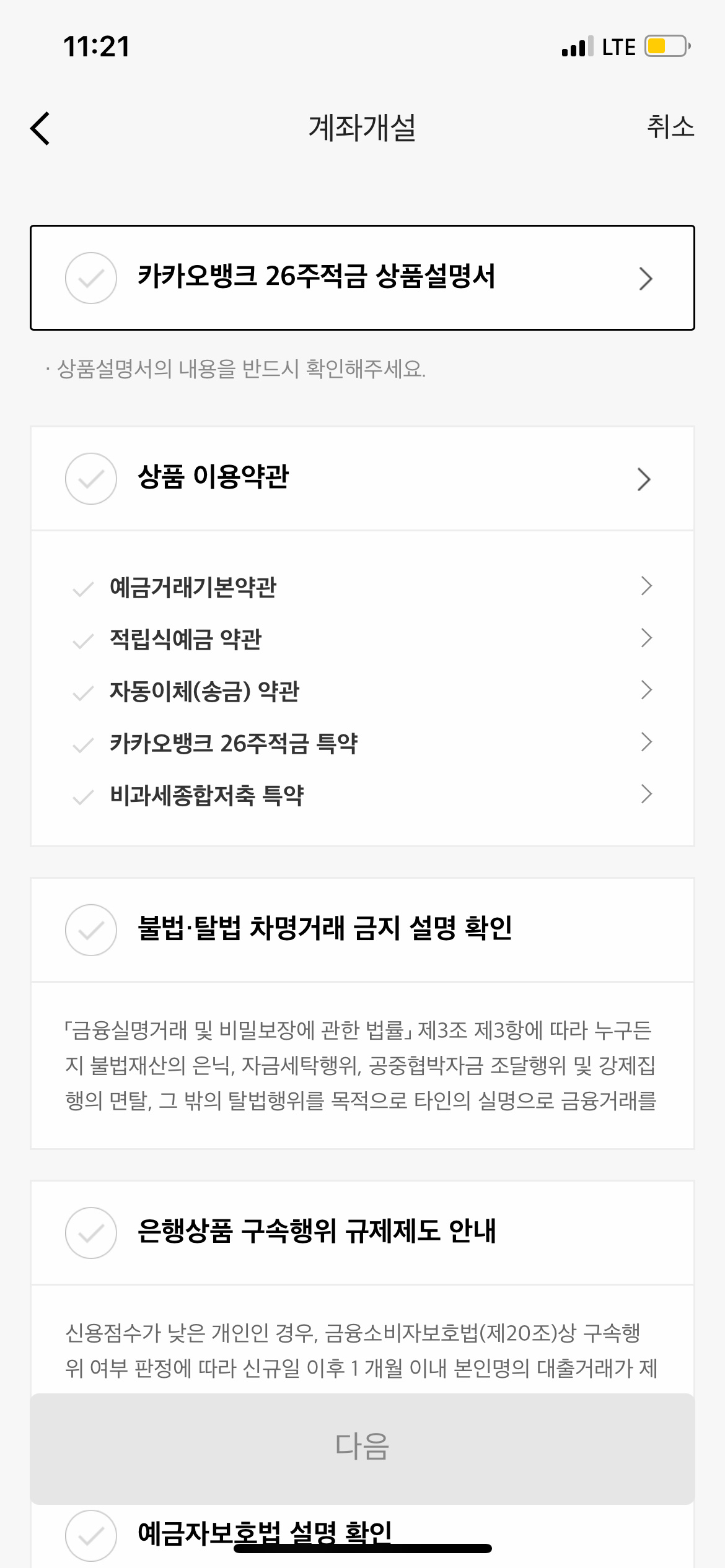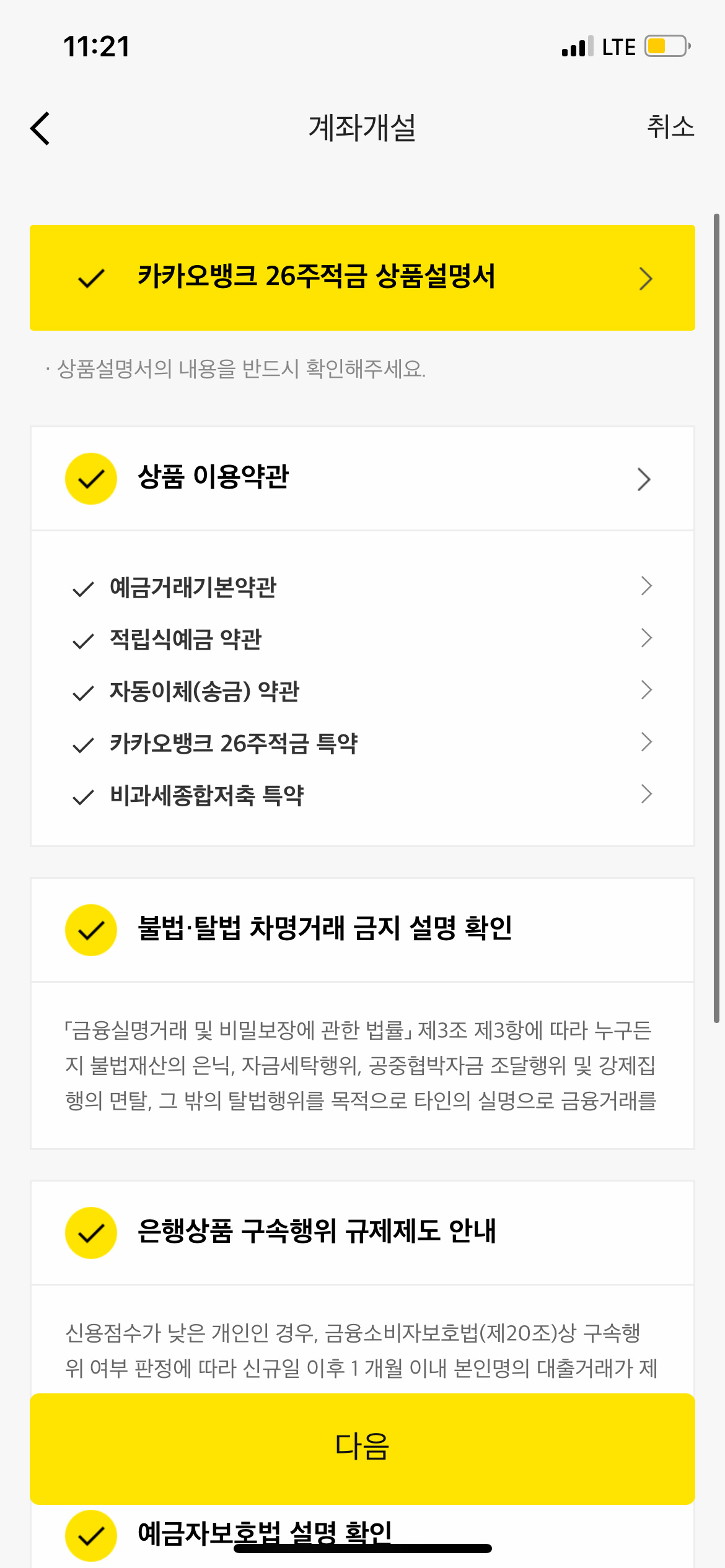 7. 약관에 동의한 후 [다음] 버튼을 눌러 이동한다. (모든 약관에 동의해야만 넘어감.)