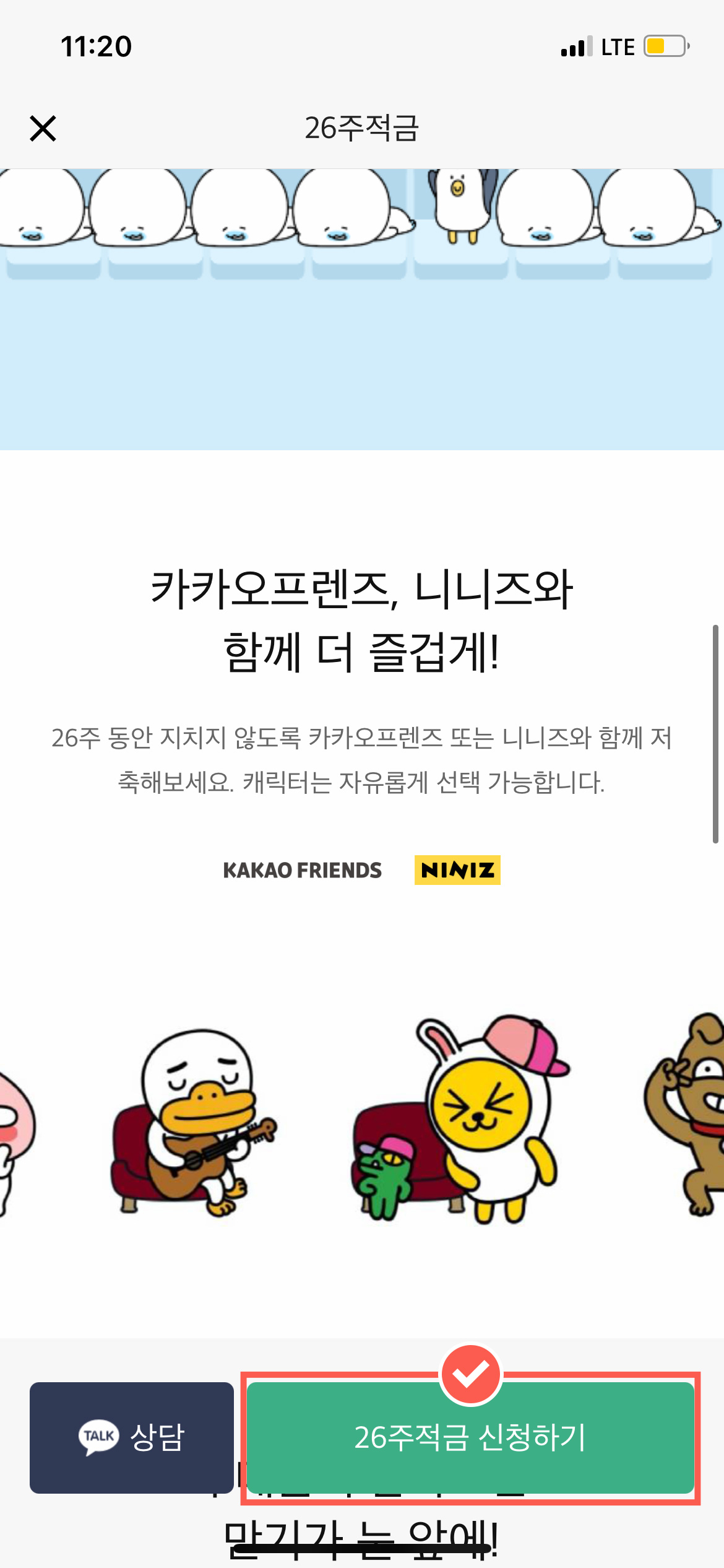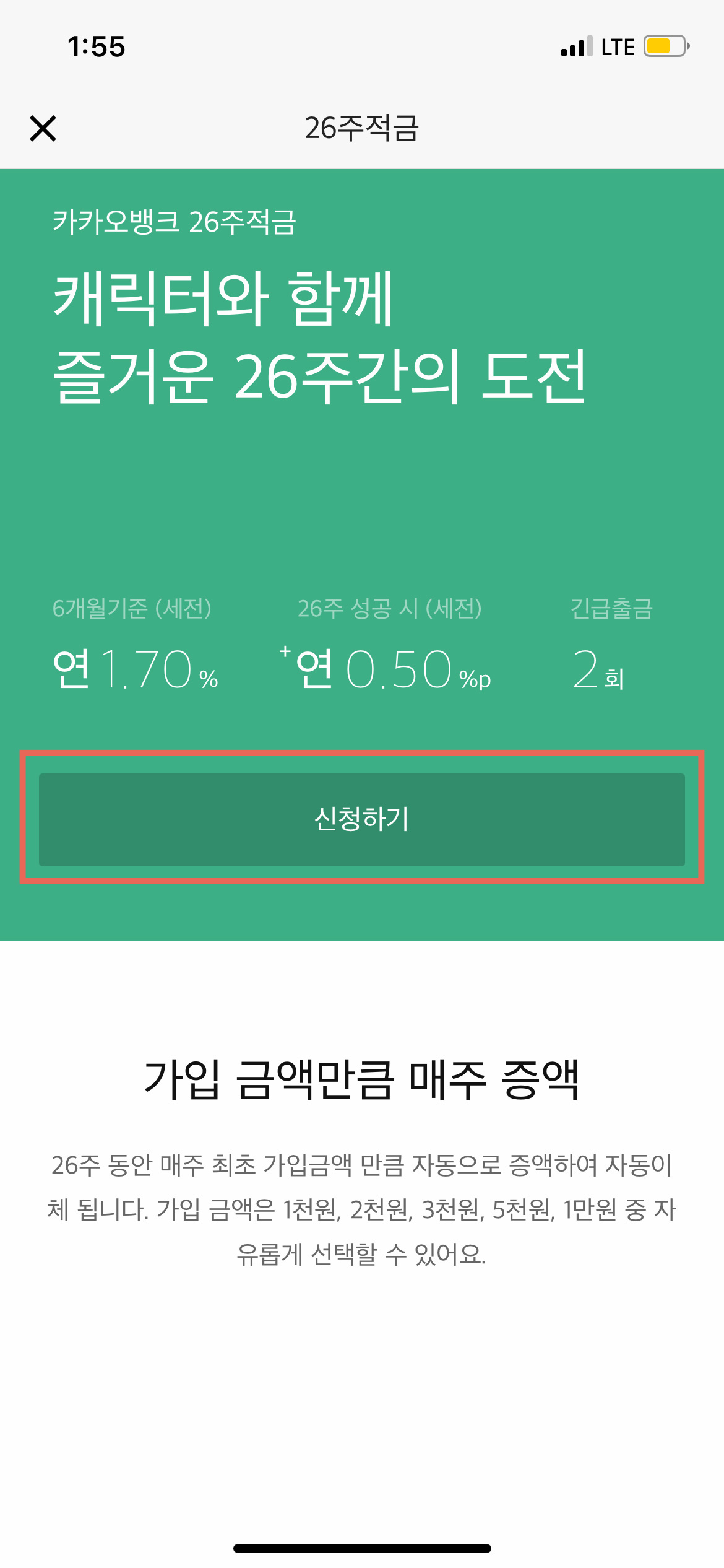 5. 상단에 [신청하기] 버튼이나 [26주 적금 신청하기] 버튼을 누른다.
