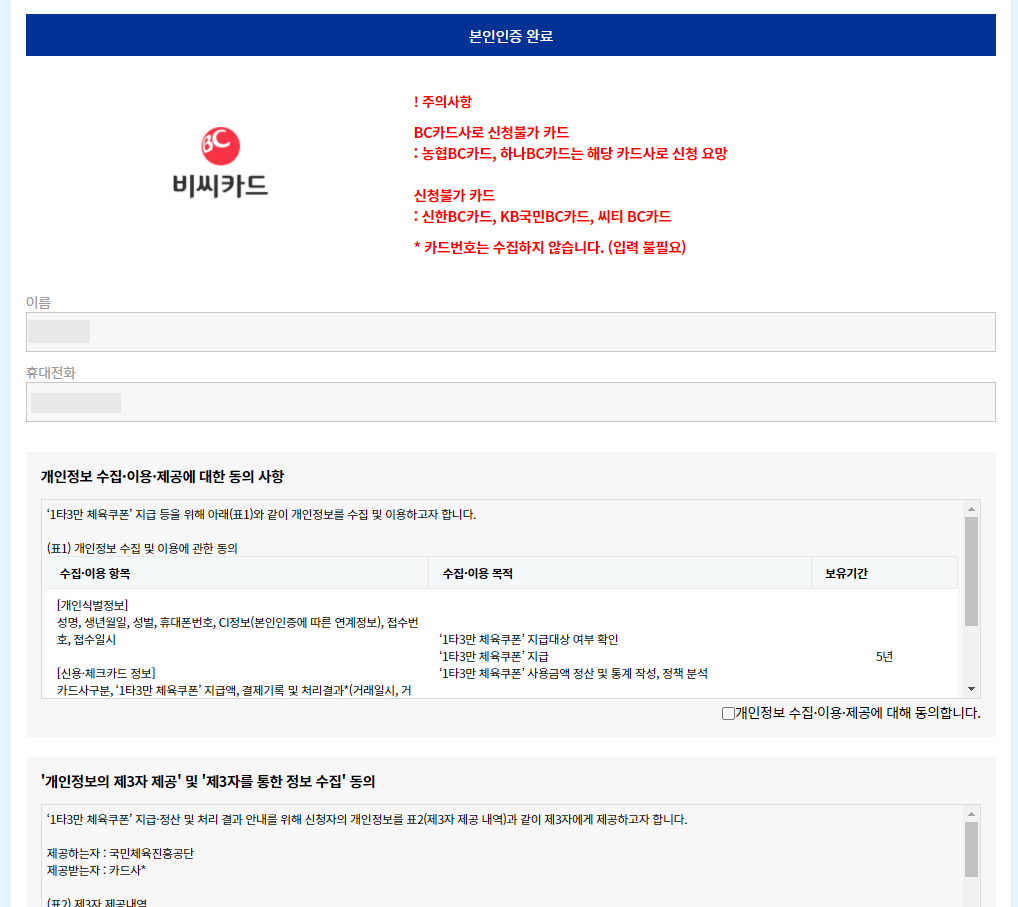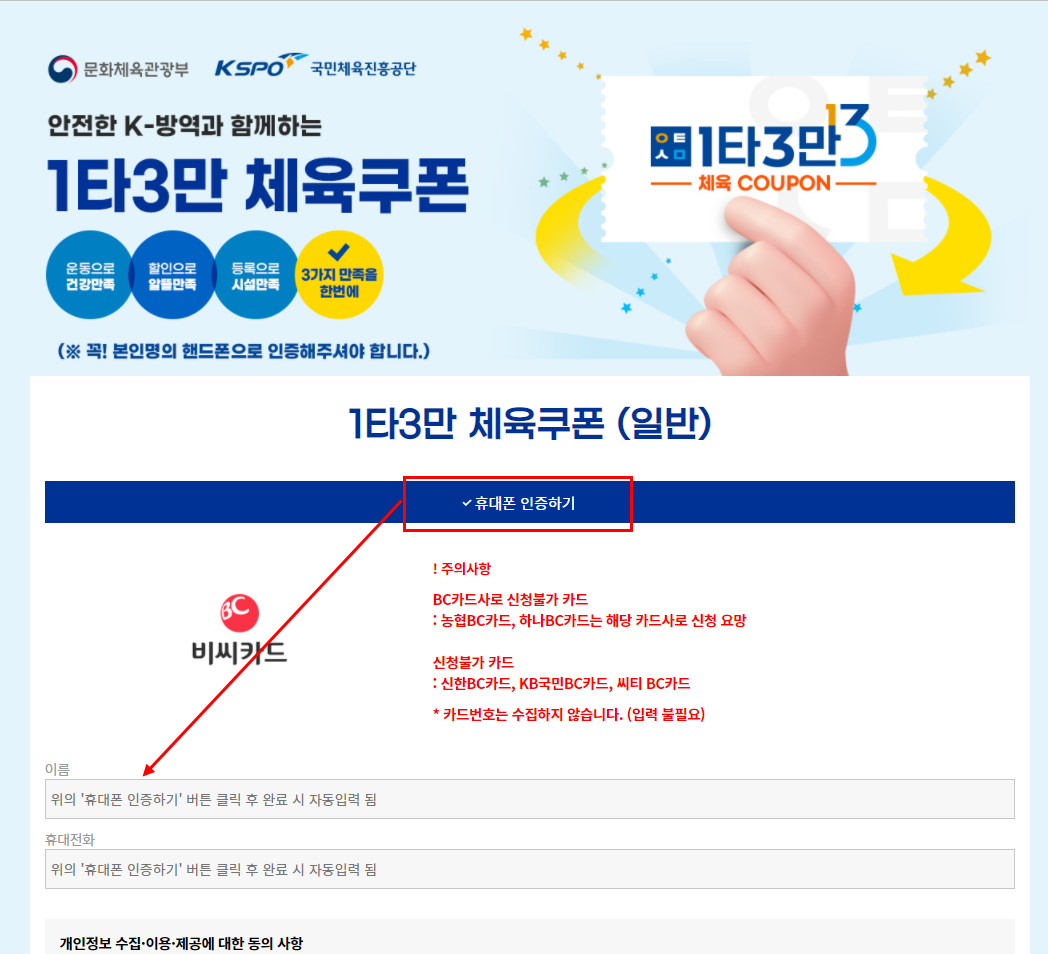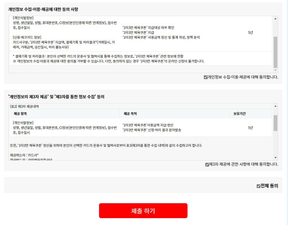 1타3만 체육쿠폰 신청 및 환급 절차 안내