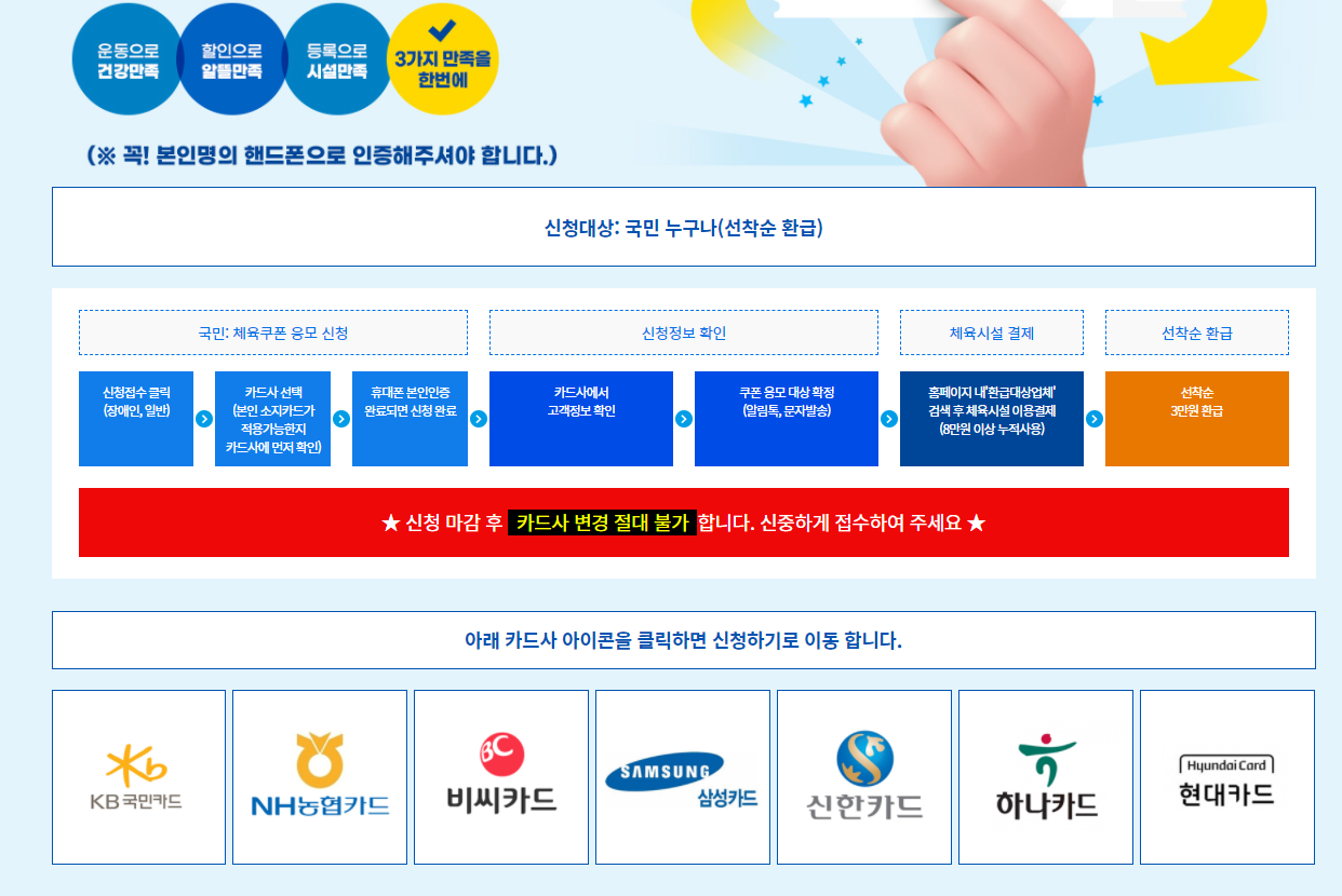 ※ 주의 : 본인 명의로 해야합니다. 선착순 환급입니다. 카드사 변경 불가합니다. 카드사별 신청불가 안내 꼭 읽어주세요.